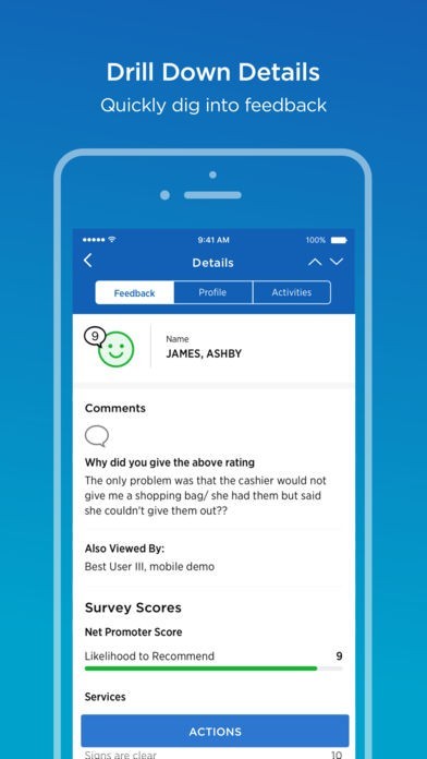 ユーザーは個々の顧客からのフィードバックを確認して関連するケース管理活動とともに各回答の完全な内容を見る事が可能なので後からどういうフィードバックをしていたか確認する時に便利です。