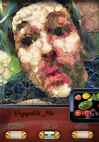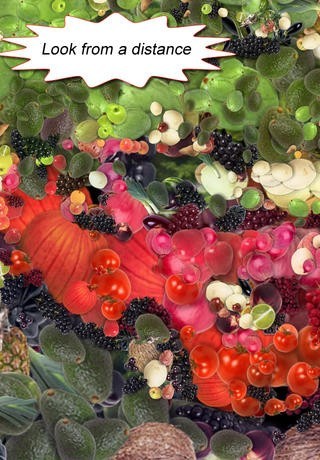 App Storeより引用Have you ever seen vegetable art? From up close it looks like a bowl of individual fruits and vegetables, but from distance the image will magically appear as your face. Fantastic for parties.