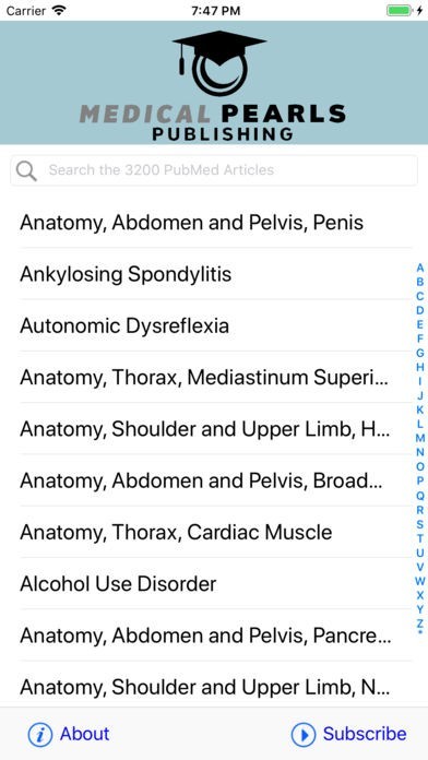 MedicalPearls PubMed Reference comes with unlimited offline access to our PubMed review articles for 30 days. After this you may purchase an auto-renewing subscription through an In-App Purchase for $9.99 per year (if you do not maintain a subscription you can only access 1 article per week). On a typical day, you can expect to find approximately 5 - 10 new articles added.