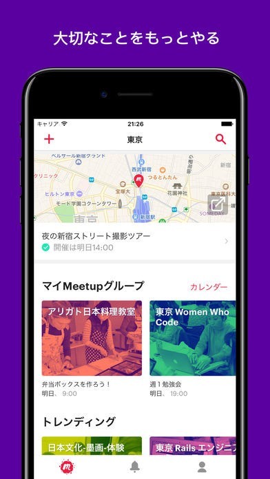 「Meetup」は、勉強やスポーツ、各種体験などに関連したイベント情報を配信しているSNSアプリです。 グループ機能を搭載しており、IT、ママ友、ブッククラブ、犬の社交など幅広いグループに参加して交流が可能。 各種イベントへの申し込みも行えるようになっており、新たな体験を探している時にも役立ちます。 検索機能を利用すれば、気になるイベントやユーザーを素早く発見することができるようになっています。