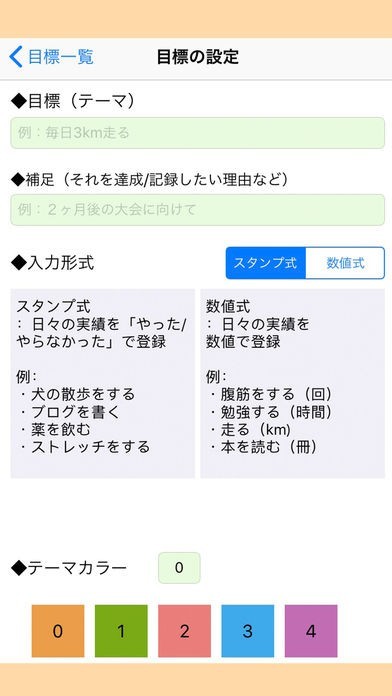 目標は複数の登録できて、テーマごとに色を変えて整理が可能