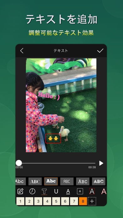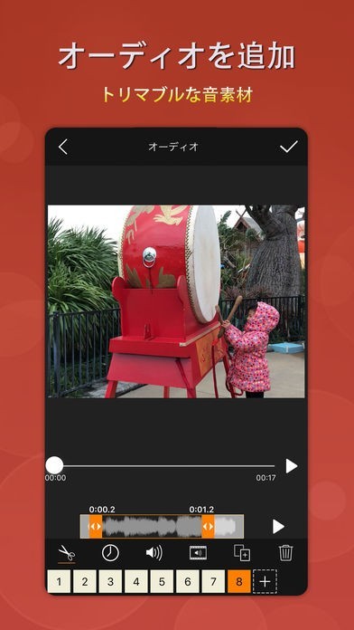 動画にオーディオを追加することができるので、ホームビデオをよりドラマチックに演出できます。テキストを追加することも可能なので、子供へのメッセージなども送れます。
