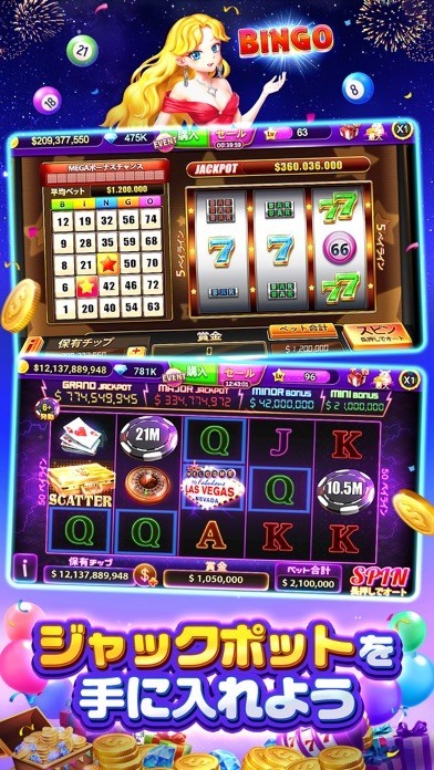 スロットやポーカー等のゲームが豊富に楽しめるスマホアプリ