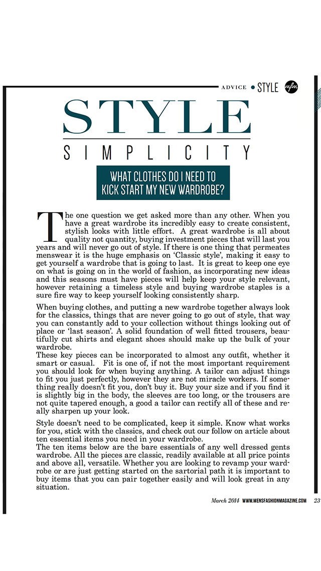Focusing on mens style, fashion, grooming, fitness and lifestyle, our magazine branches the gap between the regular guy and the sartorial gent.