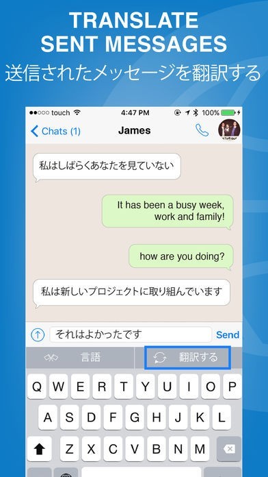 送信したテキストや受信したメッセージを素早く翻訳してくれる!