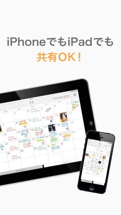 家族や恋人が管理し予定を書き込んでいるカレンダーを共有してもらうことで、アプリ上にそのカレンダーが表示されます。共有されたカレンダーは、自分が管理しているカレンダーやその他のカレンダーと重ねて見ることが可能で、日程合わせなどに活躍します。