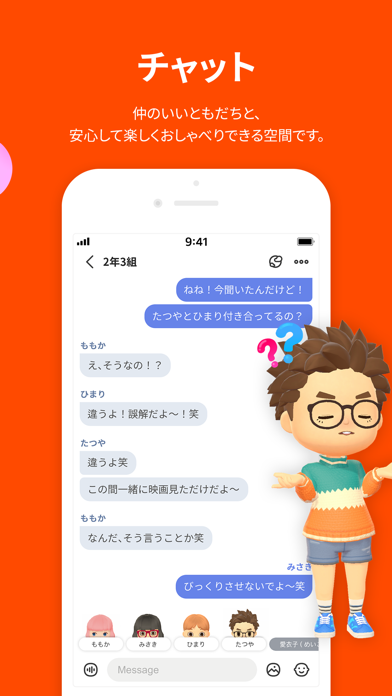 App Storeより引用仲のいい子と一緒に、自分たちだけの思い出や世界を作りませんか? ベーグルは、安心して楽しくチャットするアプリです。ー 私たちだけの特別なアジト