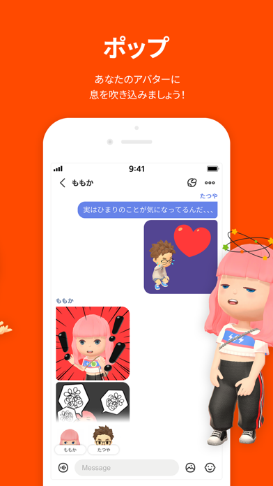 • ベーグルでは3Dアバターと「ポップ」を通じて自分の感情を新しい方法で伝えることができます。
