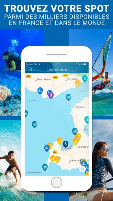 >> Des milliers de zones et spots en France et en Europe : zones côtières, ports, mouillages, spots de glisse, plages et criques, spots de plongée et de pêche et spots intérieurs. Choisissez le vôtre !