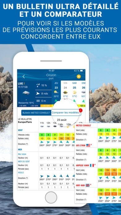 Que vous soyez plaisancier, skipper, surfeur, kite surfeur, plongeur ou encore pêcheur, vous trouverez dans cette appli toutes les prévisions dont vous avez besoin !