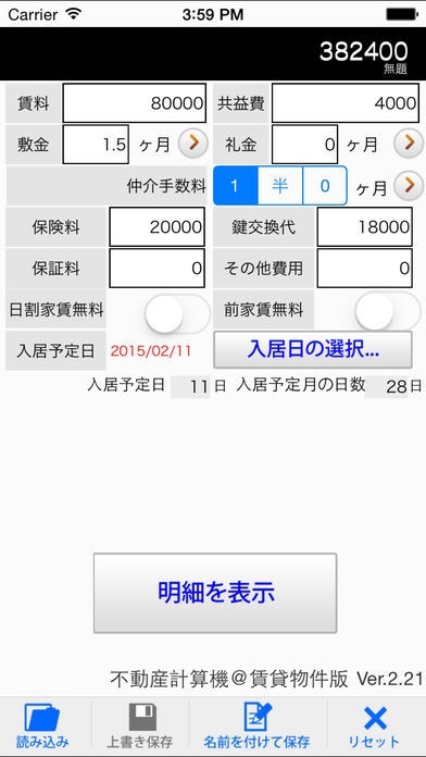 敷金や礼金の計算に対応していて、賃料や初期費用を細かく確認出来るところが使いやすい