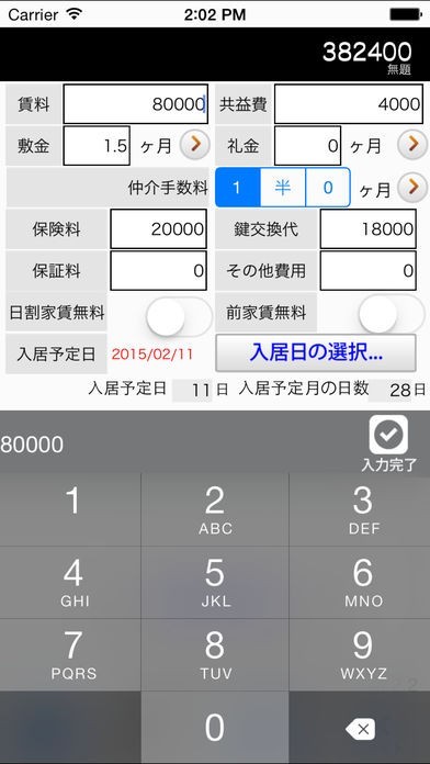 手動入力機能が付いているので、敷金や礼金の金額を細かく計算したい際に便利でした