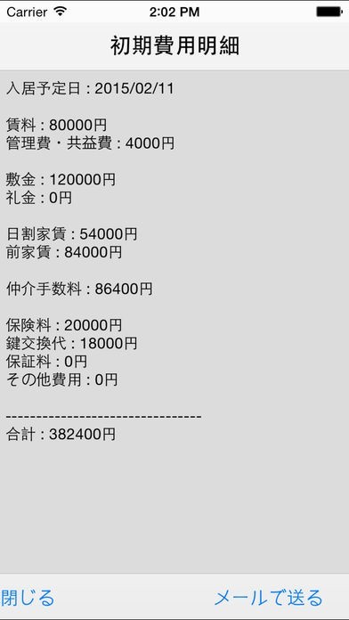 賃貸契約の時は何かと費用がかかると聞いていましたが、このアプリで事前にどれくらいの費用が発生するか確認できたのでよかったです。
