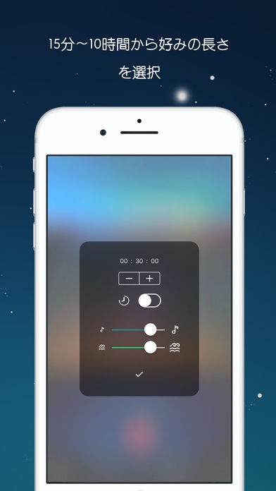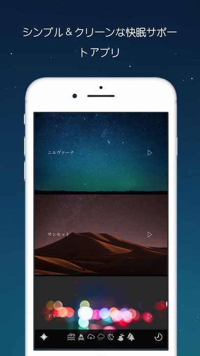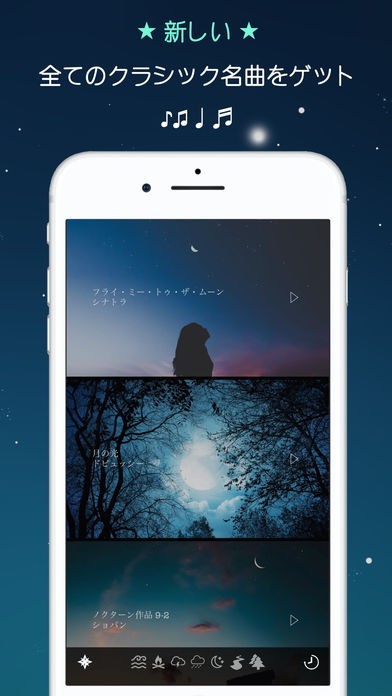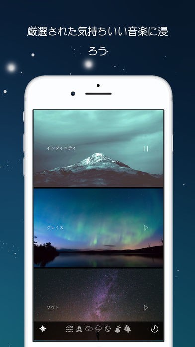 App Storeより引用睡眠前に適切な音楽を30〜60分、これを3週間続けるだけで快適な眠りを促進し、睡眠の質を高めることができます。これは決して付け焼き刃の知識ではありません。チームメンバーと友人で確実な結果が実証されています。各個人の睡眠に違いはあるものの、全ての睡眠に悩む人にご使用をお勧めします。