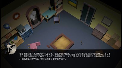 このゲームアプリは、部屋に閉じ込められた主人公のあなた。この部屋に隠されたアイテムを隈なく探し出そう。見つけたアイテムは組み合わせることも可能なので上手に使用し謎を解いてできるだけ早く脱出するゲームです。