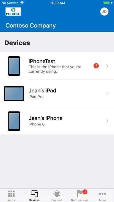 アプリやリソースなどを利用することができるデバイスを登録、表示することが可能となっていて、デバイスを紛失してしまった場合には抹消してアプリなどを利用できなくすることができます。