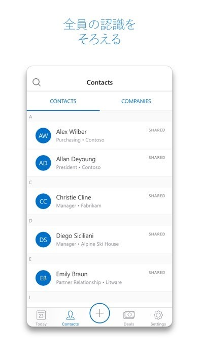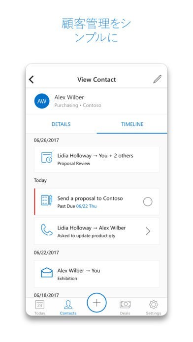 このモバイル アプリがあれば、顧客と案件の情報やリマインダーが、自分の席以外からでもアクセス可能になります。たとえば、顧客を訪問する直前に重要な情報を確認する、会議の前に前回の会議メモを参照する、議論の要点を書き留める、名刺をスキャンするといったことが、オフィスに戻らなくてもできます。このモバイル コンパニオン アプリの機能すべてを活用するには、最初に Outlook Customer Manager をデスクトップで、Windows 版の Outlook 2016 アプリケーションから実行することをお勧めします。
