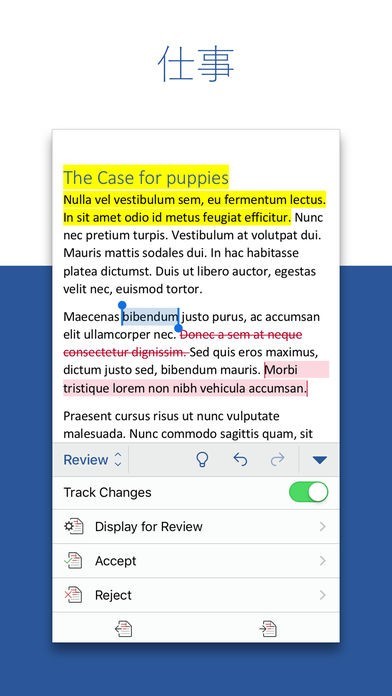 スマホやタブレットでワードを利用したい時には「Microsoft Word」がぴったり。互換性が優れていますので、PCで作業した後に、スマホで作成した資料を開いても、フォントやレイアウトが維持されます。ズレが発生しないので、見やすいです。またクラウドでデータは管理できるので、どの端末からもすぐにデータを読み込むことができます。出張が多いビジネスマンの方でも便利です。画像を貼り付ける際も、スマホからであれば端末に保存されている写真も貼り付けられます。PDFやファイルは、メールで送信することもできるので上司や同僚と共有したい時にも役立ちます。