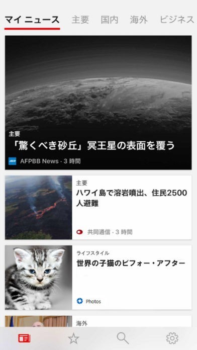 朝テレビを見る暇がなくても、これを見ればトップに大きな見出しが出てくれるので今何が話題になっているのか一目でわかります。