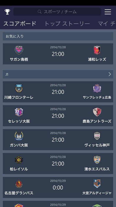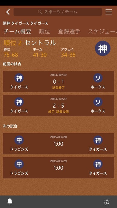お気に入りのリーグやチームについて試合の最新情報をリアルタイムで入手し、スケジュールや順位表、最新ニュースに簡単についていけます。