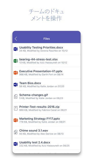 各自が作成したデータファイルは直接対面して持ち寄る必要がありません。アプリ内にアップロードすればメンバー全員がチェックできるからです。お互いの作業の進捗状況を把握するためにも便利です。