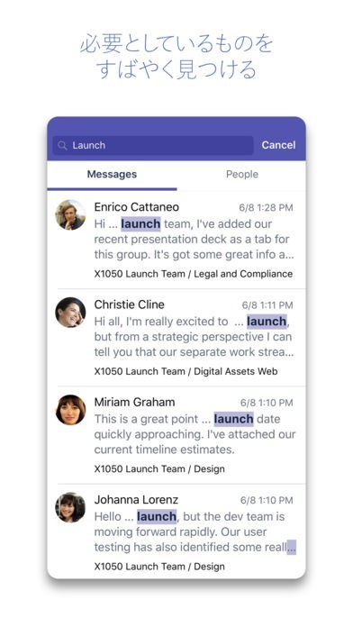 チームメンバーの会話を一覧でチェックできる
