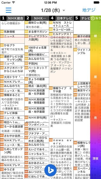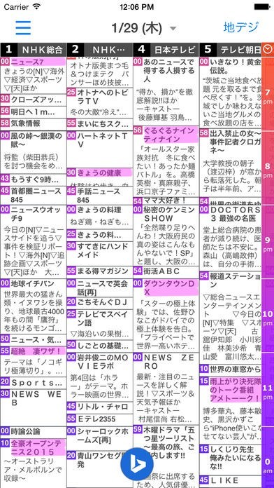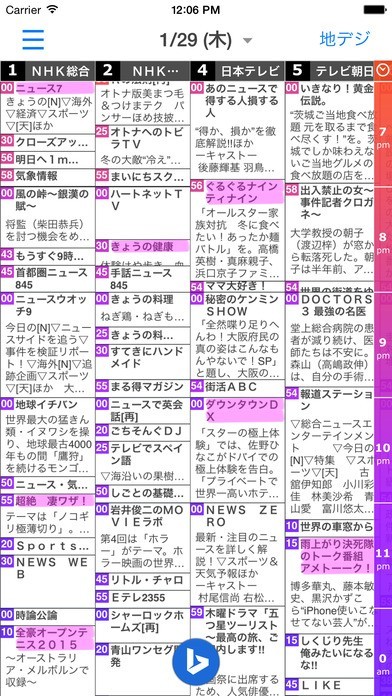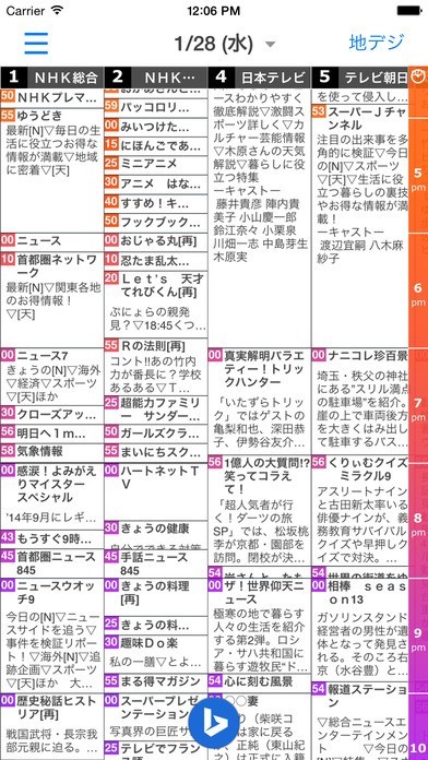 地上波とBS両方のテレビ番組表を時間と場所を選ばずに閲覧できる。番組の開始時間も強調表示で見やすい!