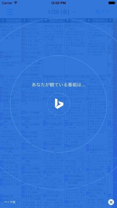 テレBing番組表のスクリーンショット