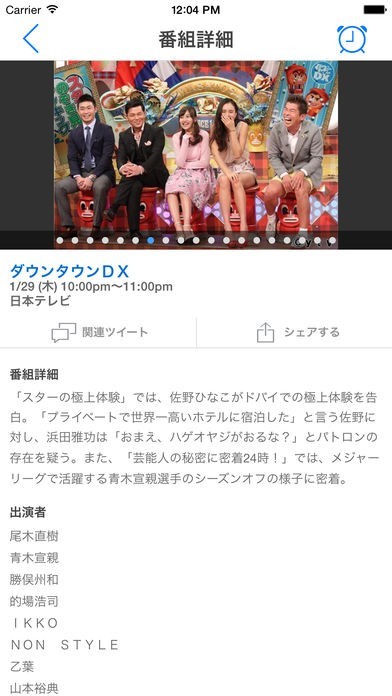地上波デジタルとBSデジタル対応のマイクロソフトが提供しているテレビ番組表アプリ。スマホでいつでもどこでも気になる番組の情報を確認できます。キーワードとカテゴリによる検索や、事前に登録した番組の放送時間になると知らせてくれるアラームなど定番の機能に加え、放送中の番組音声をマイクに入力するとその番組の情報を表示してくれるユニークな機能も搭載しています。また番組の詳細画面からは番組情報や感想などをSNSでシェアして楽しむこともできます。