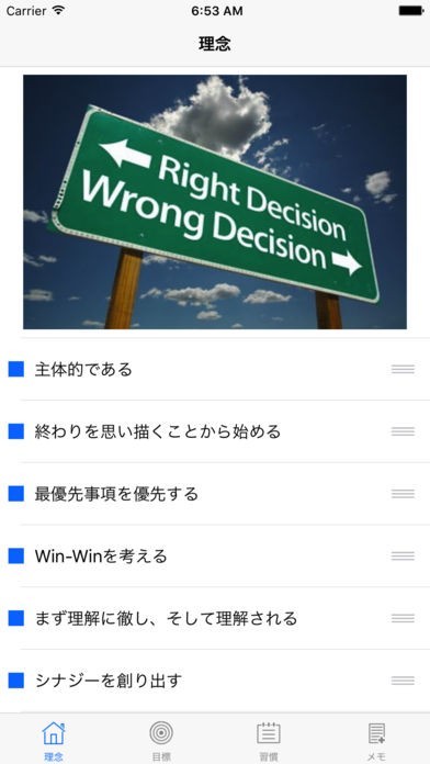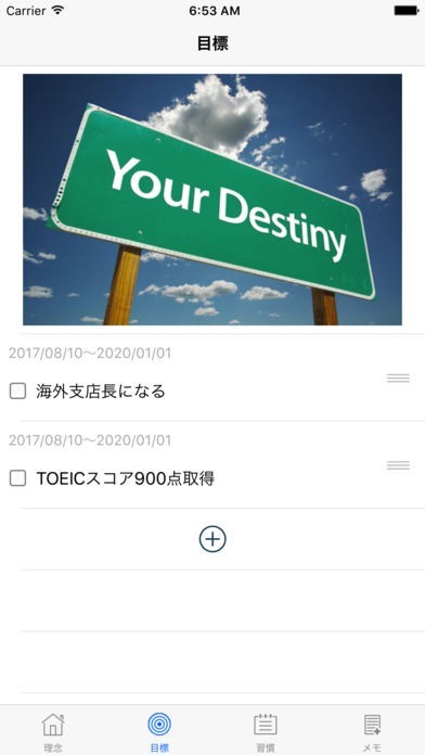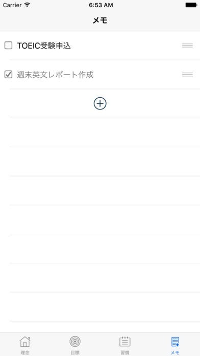 メモ機能搭載で思い付いた目標やアイデアを記録できる