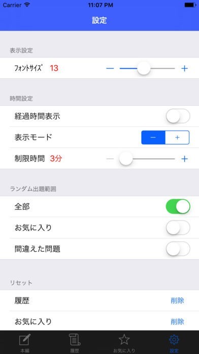 アプリでは、制限時間を設定し、本番も想定した本格的な模擬試験を受ける事が出来ます。時間はその都度変える事が出来るので、徐々に時間を短くして挑戦することが出来ます。