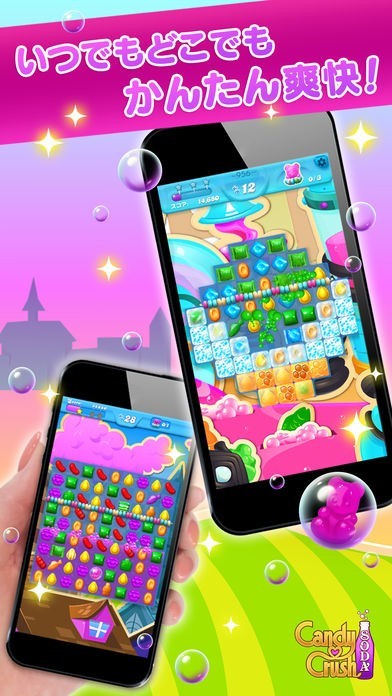 キャンディーを3つそろえて消すというルールと簡単な操作性はそのままで、ソーダという新たな要素が加わったことでより爽快さを感じられるようになりました。上からだけでなく下からもキャンディーが出てくるようになったので難易度も増しているので、前作をたくさんプレイした方でもやりごたえがあって楽しめます。レベルは1000以上用意されているのでやりこみ要素もあります。シンプルなゲームなので初心者にも分かりやすく、すぐにはまることができます。いつでもどこでも気軽にプレイでき、ビジネスマンが朝の通勤時間にプレイすれば眠気を吹き飛ばして頭をスッキリさせてくれます。