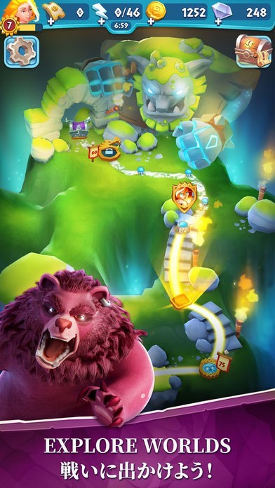 本作は世界的人気を誇る「キャンディークラッシュ」などで知られるKingによるパズルRPGです。クリーチャーを縦に並べる「合体」や横に並べる「バリケード」などを駆使する戦略的なパズルバトルが楽しめます。
