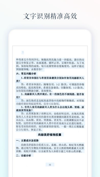 它能够读取相机或者图库中的图片,由您指定识别区域,然后自动转换为文字。