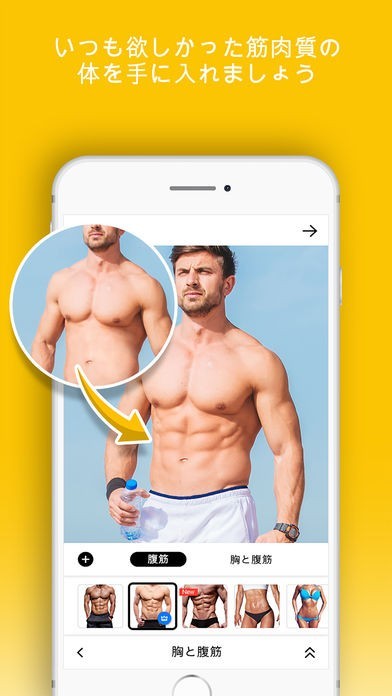 色々な体のタイプを用意しており、自分の写真と合成できます。貧相な体でもムキムキにし、無駄な贅肉もスッキリなくすことが可能です。デコボコも細かく調節できるので、メリハリがある体が完成します。