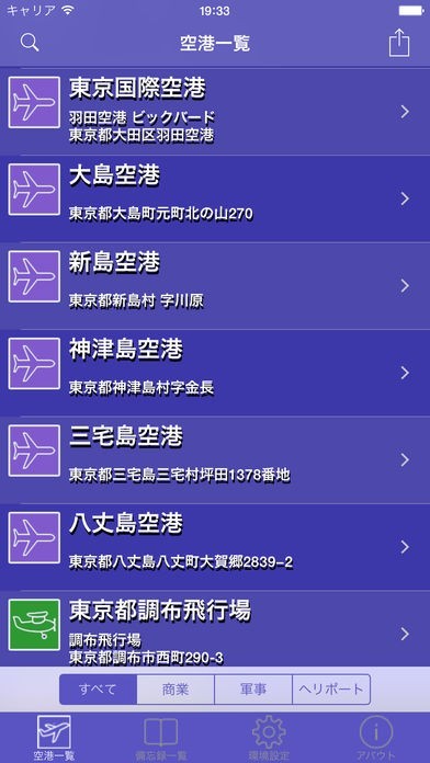 航空関係の施設を調べることもできる