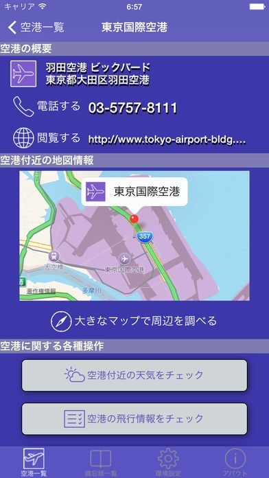 空港の飛行情報や飛行場予報を見られる