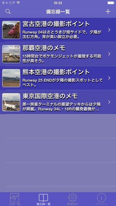 ブックマーク機能でよく利用する空港などを登録することができるので、いつでもすぐにお気に入りの空港の情報にアクセスできます。音声認識機能で声でメモを残すこともできます。