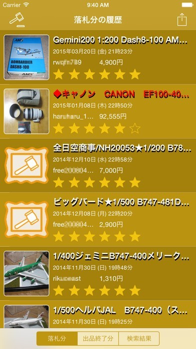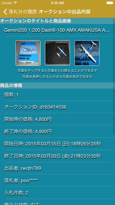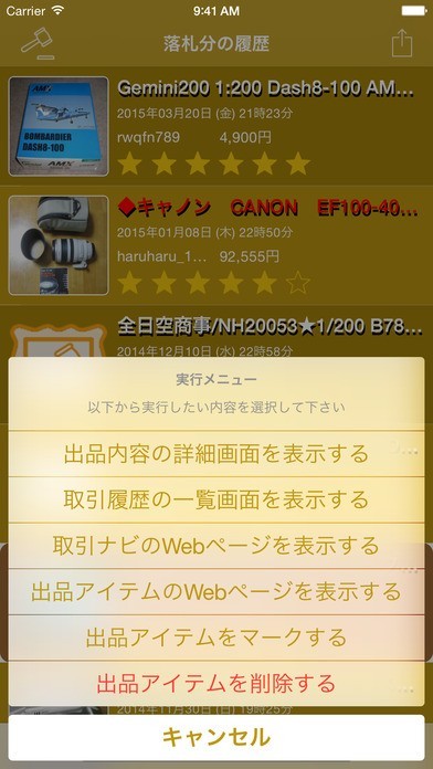 落札した後や出品が終了したアイテムについて詳しく記録でき、取引相手や価格の推移まで全てを確認できます。一つ一つの取引にたいしてメモをすることも可能なので、あとで見直す時に便利です。