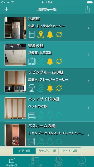 保管場所毎に収納リストを作ることが可能!