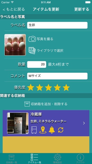 管理しているものが分かりやすいようにアイコンとして写真が選択可能