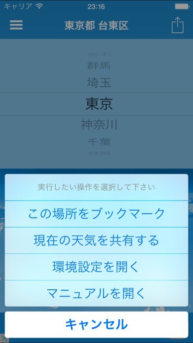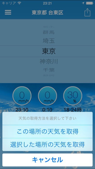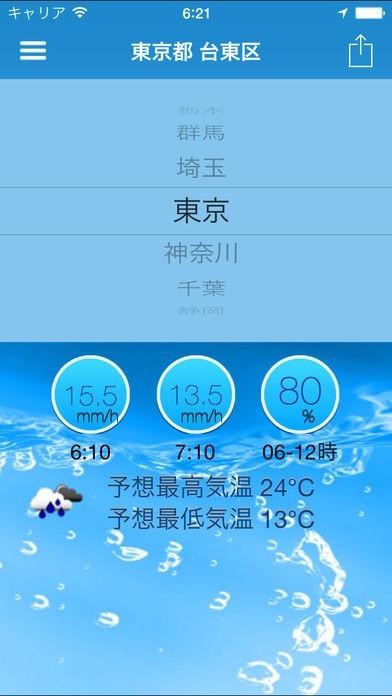 - 手動で選択した都市の降水量、降水確率をチェックできます。