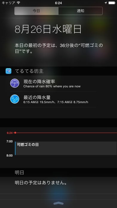 - 通知センター(今日)で降水確率と降水量をチェックできます。