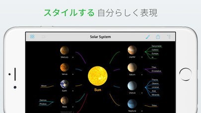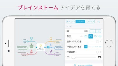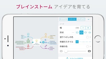 App Storeより引用MindNodeを使ってマインドマップを楽しみましょう。マインドマップとは、あなたの思考を視覚的に表現したもので、中心となる考えや概念から始め、そこから展開させていきます。MindNodeを使用することで、思考を直感的にブレインストームして、整理し、共有できるので、背後にあるアイデアに集中することができます。すっきりとしたインターフェースは浮かんだアイデアを次々とつなぐことができ、無限に展開するキャンバスのおかげで、プロジェクトがどんなに大きく複雑になっても対処することができます。