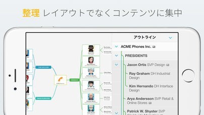 • 内蔵のアウトライン表示機能を使用すれば、大きく複雑なマップもシンプルに表示