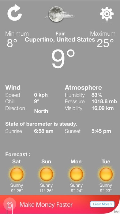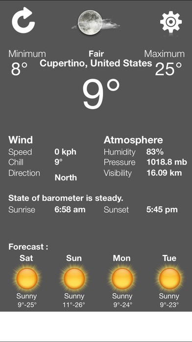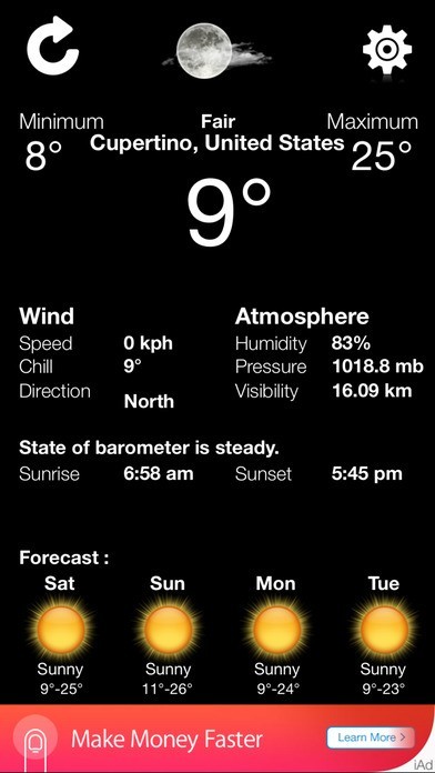 「weather exact condition - accurate and updated local forecast application」は、必要な容量が少なくてスピーディーに立ち上げることができるので、すぐに天気予報をチェックすることができるほか、現在地周辺の天候情報を表示できるアプリになります。