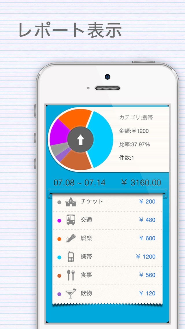 日・週・月・年からレポートの表示方法を切り替えることができます。また、収入に対しての現在の残金を明確に教えてくれるので、家計簿をつけておくことで無駄な支出を控えることに繋がります。