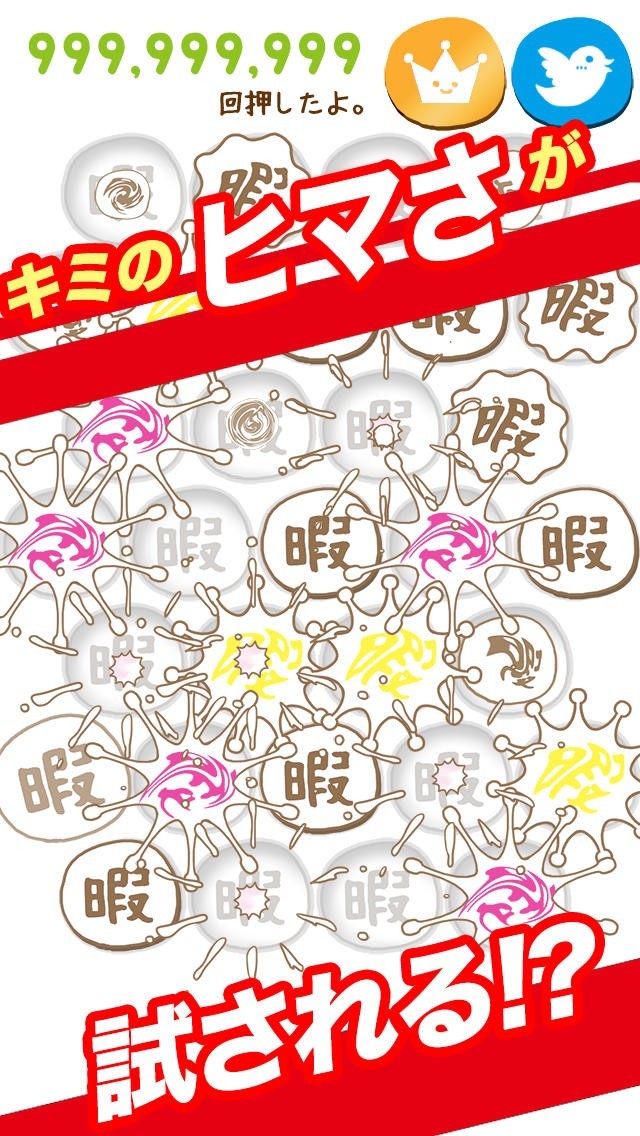まさに暇つぶしをしたい時に遊ぶものであり、暇、という文字がたくさん出てきて、その「暇」をタップすることによって、ぷにゅっと可愛らしい音で破裂していきます。まさにゲーム名通り、暇という文字を潰していくことができるようになります。プチプチを潰すことに快感を覚える人には堪らないものであり、ゲーム自体はすぐに一回が終了するので本当にちょっとした暇つぶしが必要なシーンに活躍してくれることでしょう。一人で移動している時間とか何かの待ち時間などにプチプチと暇の文字を潰して、まさに暇つぶしを行うことができるようになっているのです。炸裂音が可愛いのでそこも魅力です。