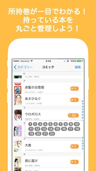 - 本棚の数字をタップすると、所持巻が吹き出しで表示されます