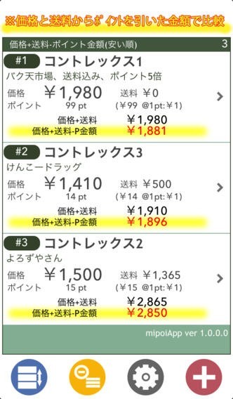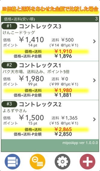 異なるお店で売られている商品の値段を送料・ポイントまで含めて比較するアプリ